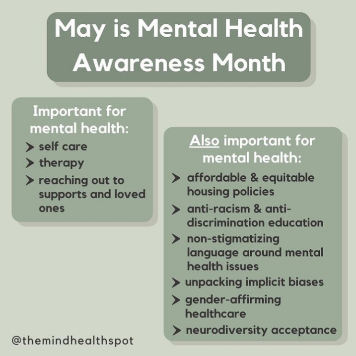 We want to acknowledge the link between building healthier communities and Mental Health Awareness Month. Many things go into our overall wellness, but we must remember that our community’s immediate needs such as housing, healthcare, and freedom from discrimination, and the policies and systems that shape those things matter as well. Thanks so much to The Mind Health Spot for this reminder below on how crucial the fight for systemic change is for our mental health!