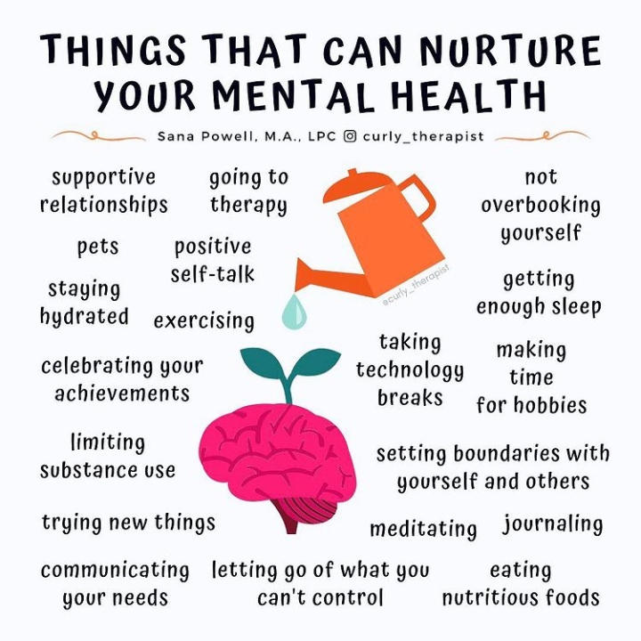 As #MentalHealthAwarenessMonth continues, we want to uplift this wonderful reminder from @curly_therapist on IG. Tending to your mental health is multi-faceted and includes both large and small tasks. Be kind to yourself, be intentional about nurturing your mental health, and remember you you can’t pour from an empty cup so make sure you’re pouring into you