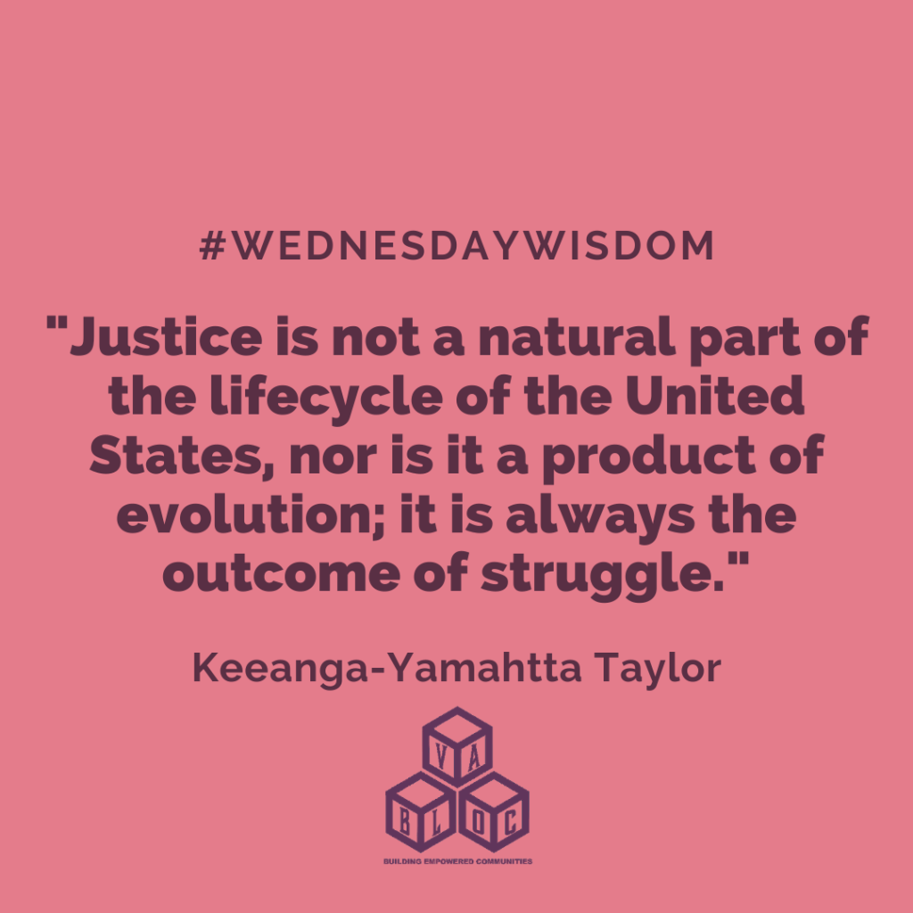 For Today’s #WednesdayWisdom, contemporary writer (Keeanga-Yamahtta Taylor reminds us that justice will not come on its own. Rather, justice will come through our collective and sustained struggle towards it. That said, don’t lose hope because when we band together, justice is attainable!