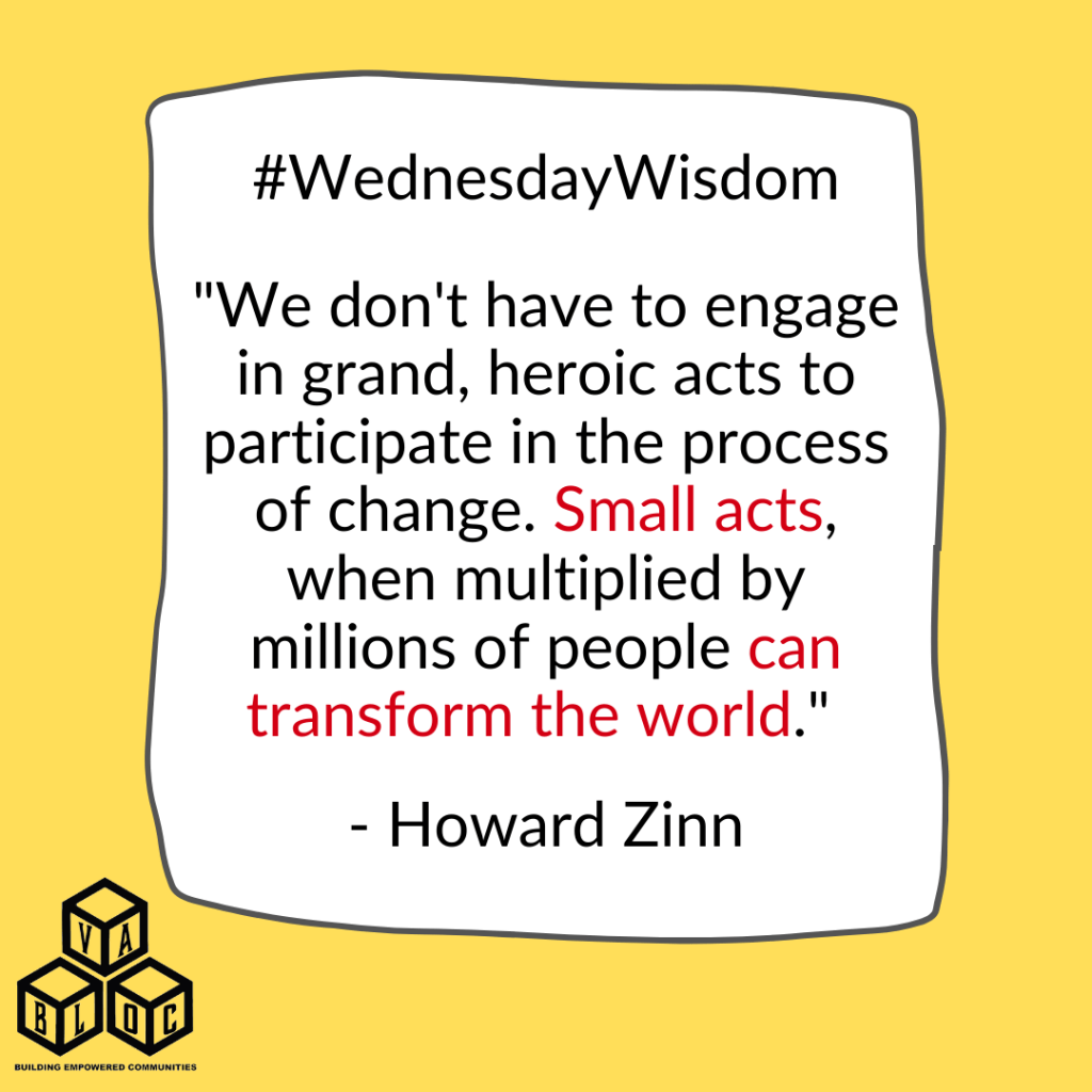 Today’s Wednesday Wisdom comes from American Historian Howard Zinn. He reminds us that we don’t need to be spectacular or extraordinary to help change things because when we come together, our strength is in our numbers! Message us today to take those small steps toward big changes!