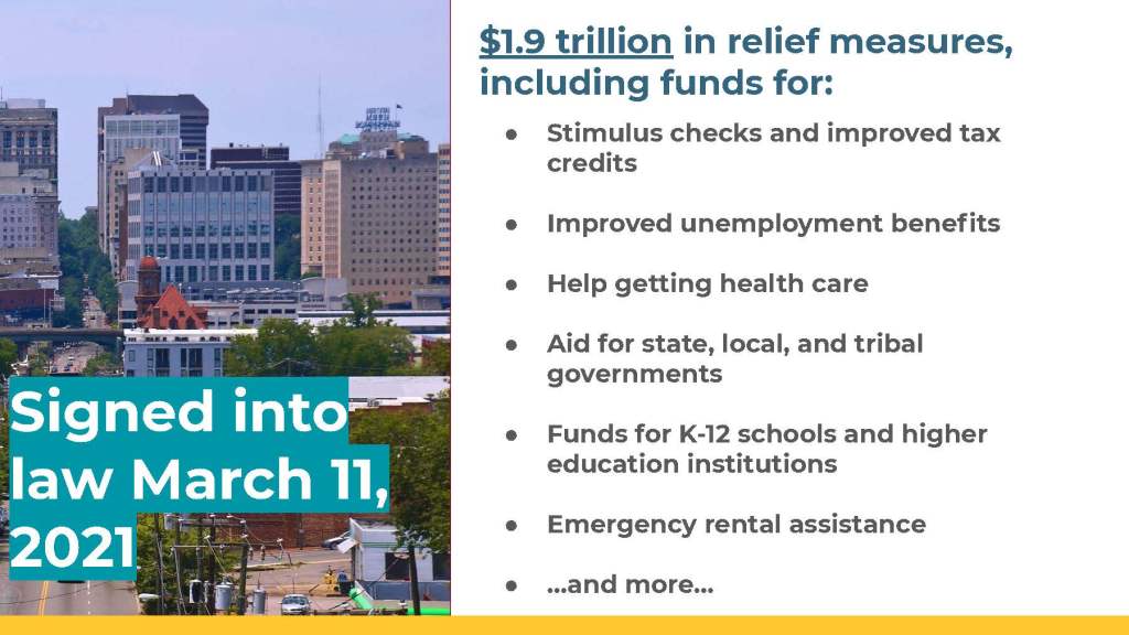 See below for more information on what the American Rescue Plan funds may mean for you!