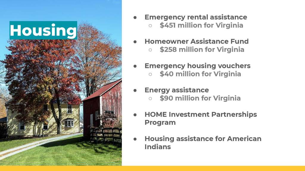 - Emergency Rental Assistance Programs: https://www.dhcd.virginia.gov/rmrp