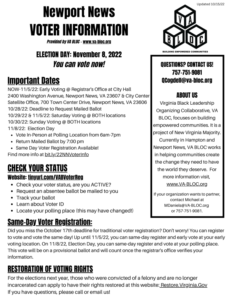 Register to Vote & Update Your Voter Info: tinyurl.com/VABVoterReg