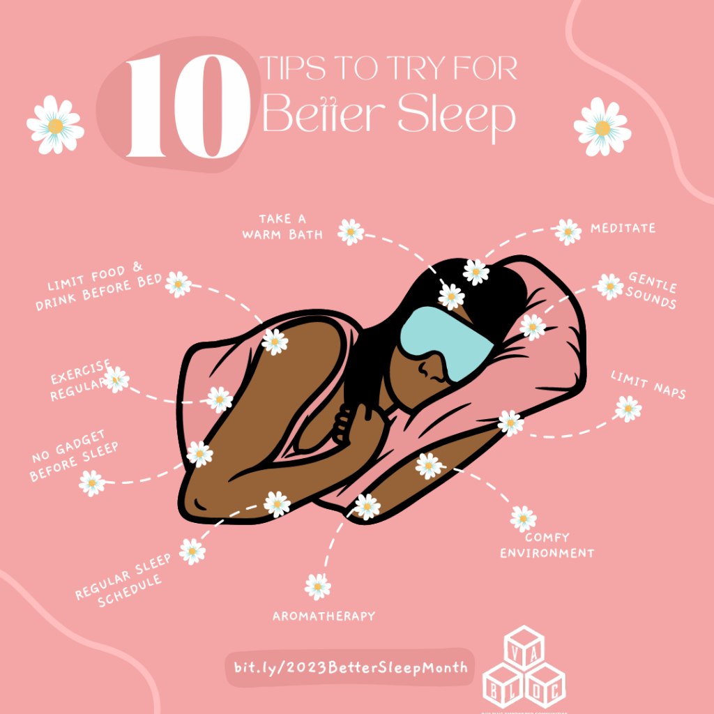 One important aspect to remember is that often the ability to get enough good sleep is a privilege. Some systems and conditions like low wages and housing insecurity can impact the quality of sleep that people can get. We need to keep fighting for a world where livable wages, safe homes, nutritious food, and peace of mind are attainable by all.