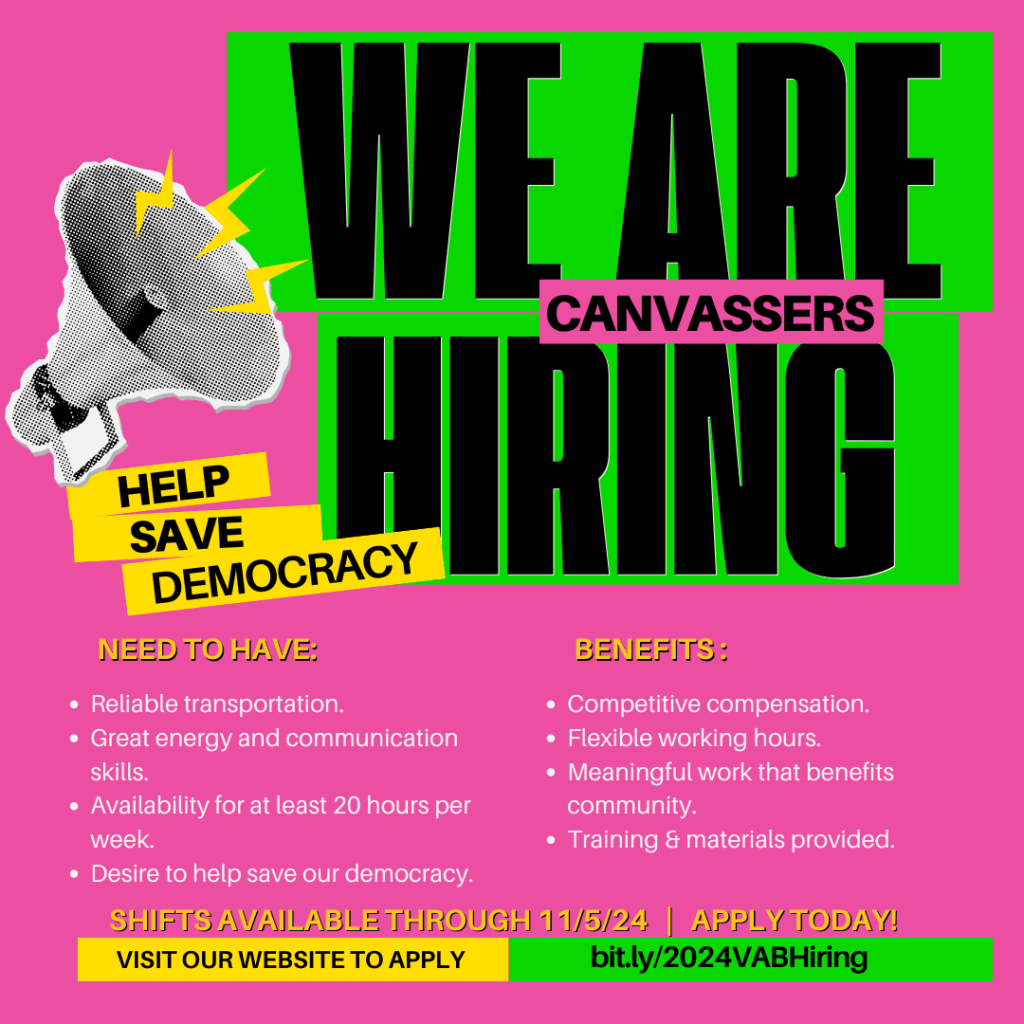 Please click here to apply: bit.ly/2024CanvassersVAB